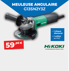 - La meuleuse angulaire HIKOKI avec son disque diamanté et son coffret en PVC à 59,90€ ;
